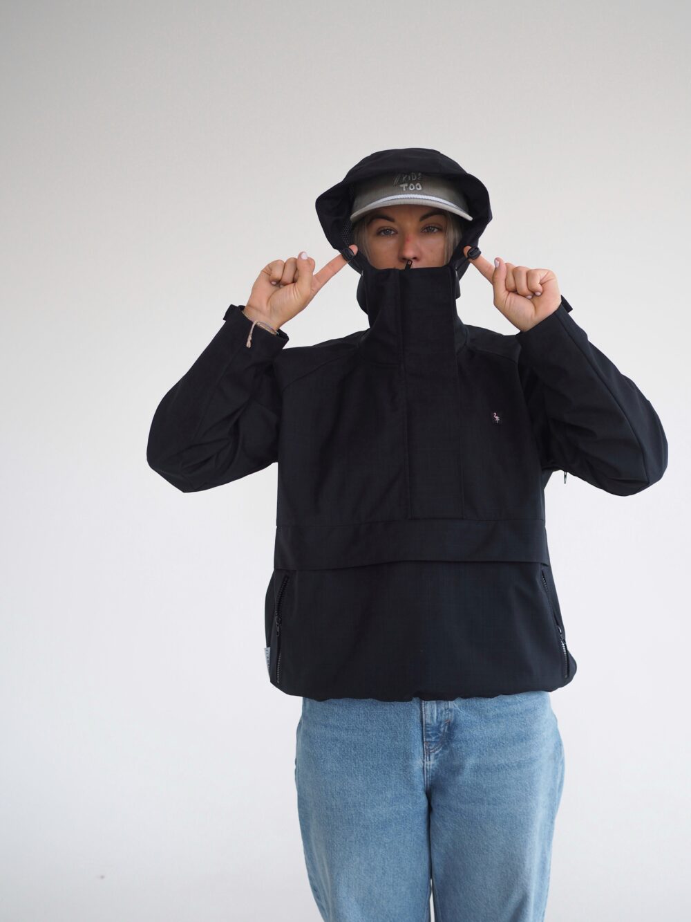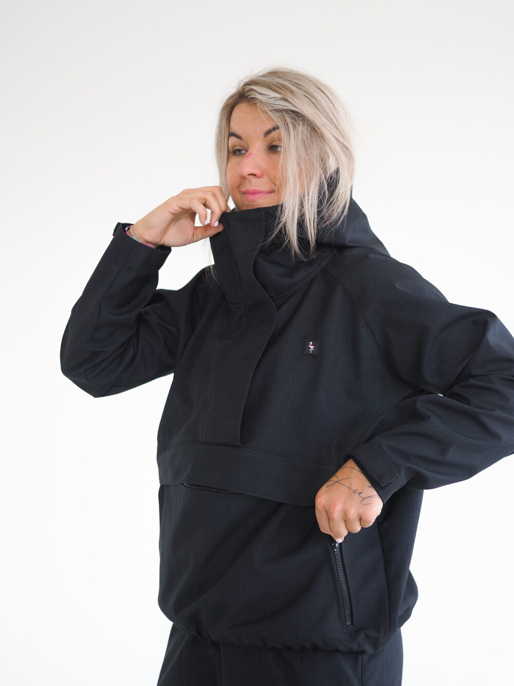 It protects you, keeps you warm, and still lets your skin breathe. Thanks to its three-layer construction with a membrane, it’s a reliable partner when the weather changes several times a day. The outer layer is strong and abrasion-resistant, so you don’t have to worry about a backpack or heavier use. The inner side has a black-and-white checkered knit, which provides light thermal comfort – just enough to keep you warm in the mountains in the morning, without overheating during activities later in the day.