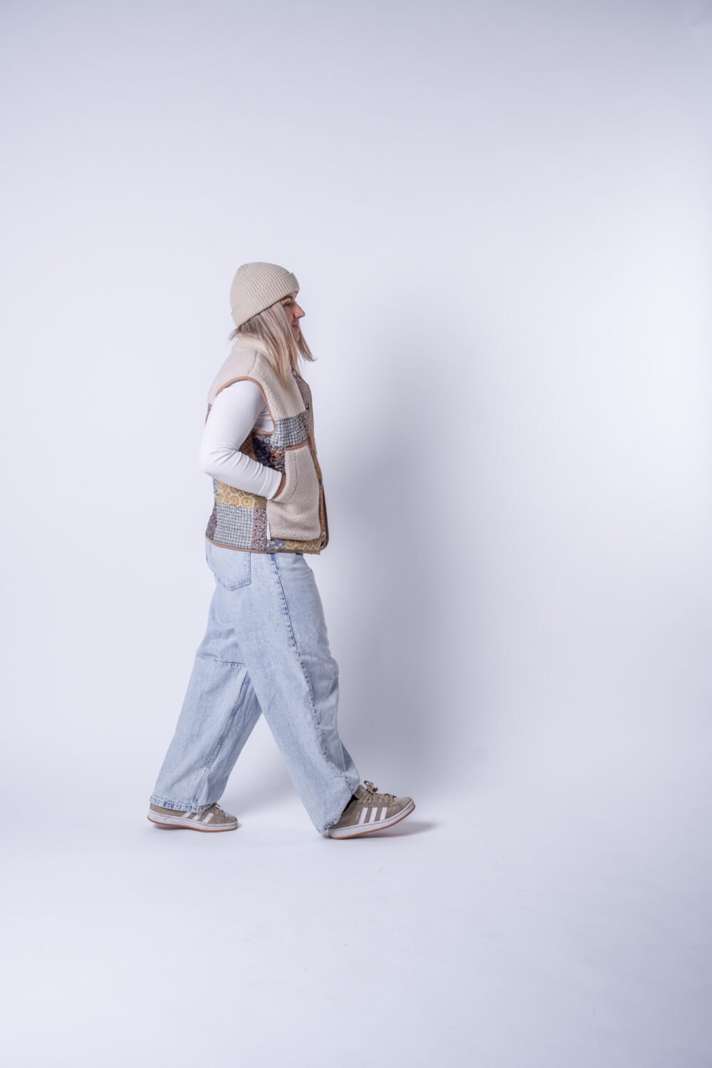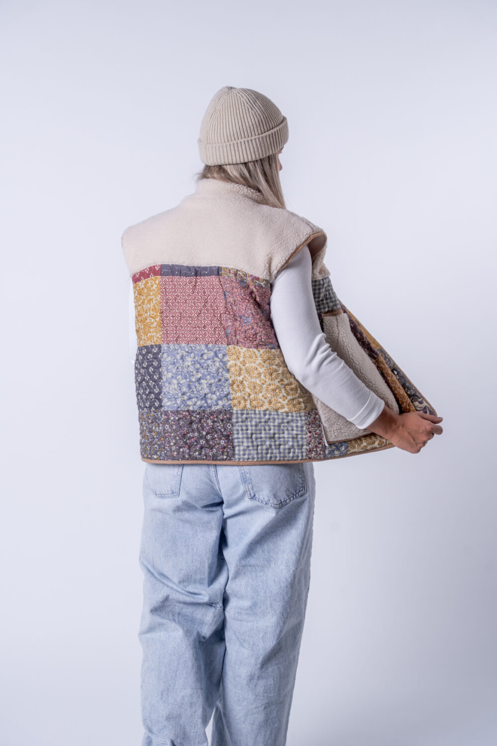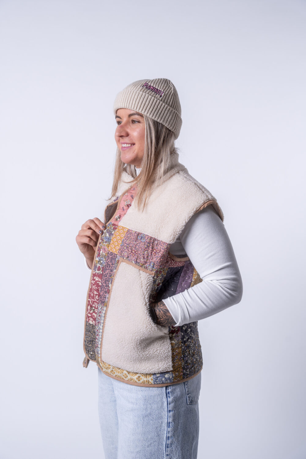 This vest is like a hug you can take anywhere. The insulated fleece keeps you cozy, recycled materials add uniqueness, and every design is a little original on its own.
