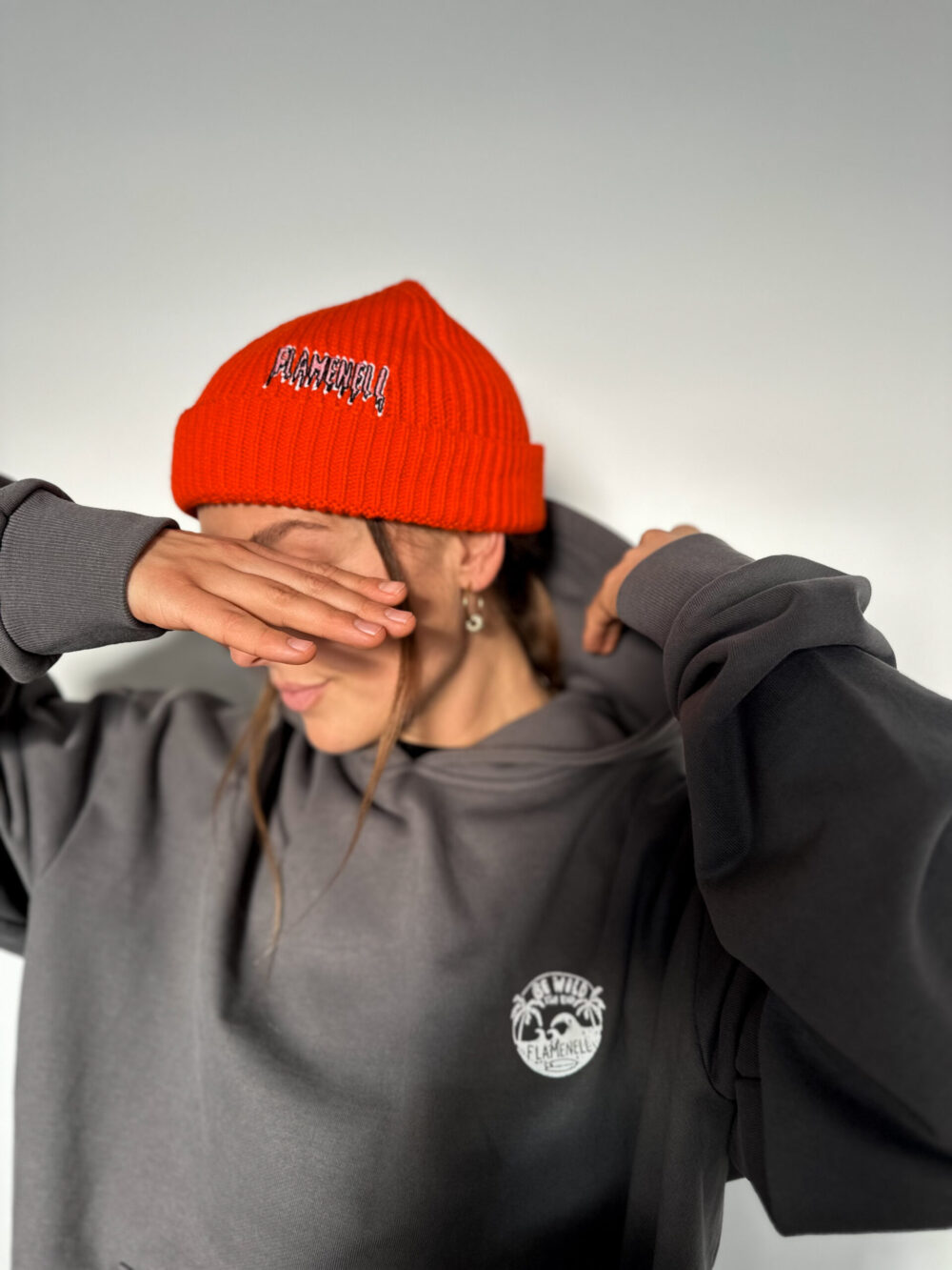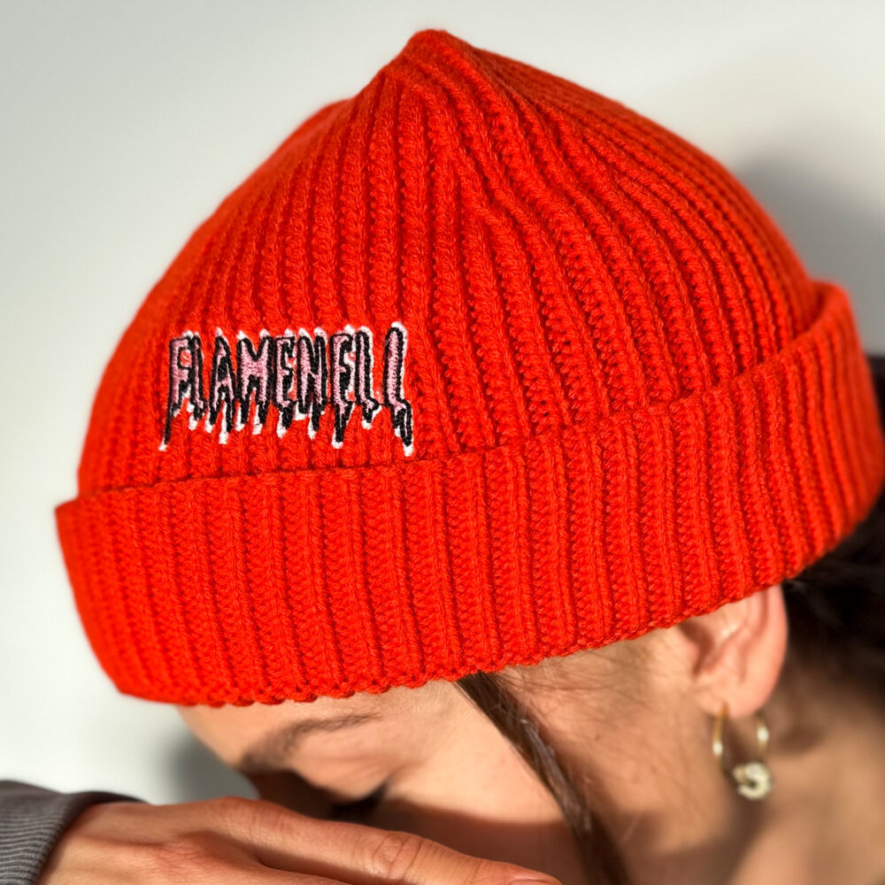 A new winter beanie made from ribbed, comfortable knit fabric. This ribbed knit contains at least 50% recycled polyester. The beanie features our favorite embroidered FLAMENELL logo and fits perfectly even under a helmet.